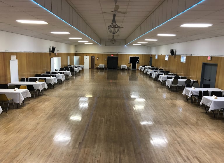 You'll find a huge 3600 sq. ft dance floor at Kennedy Hall, that has been recently refinished. Sprung hardwood floors of this size are scarce these days. Ballroom and Latin dancers appreciate having plenty of room to stretch out.